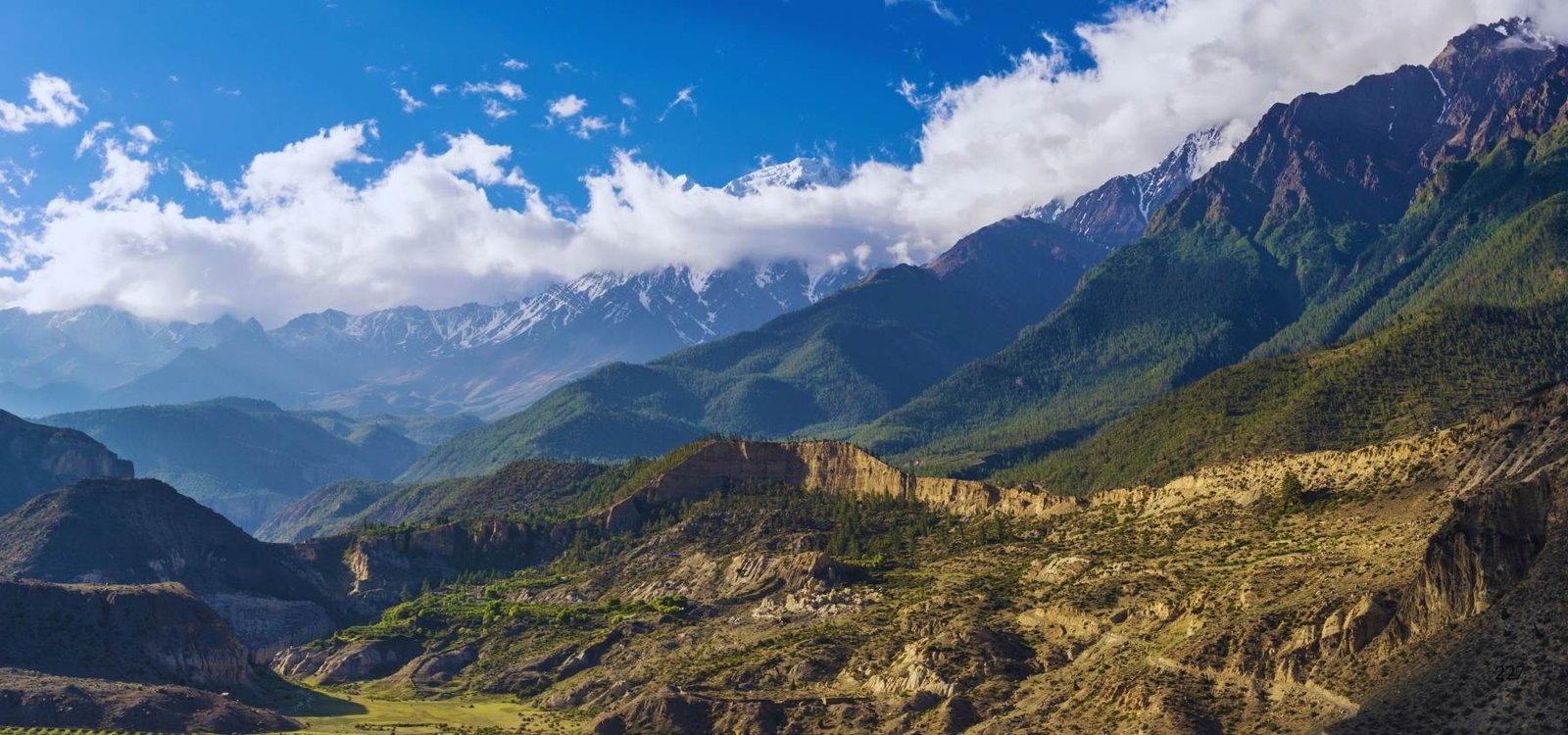 Trek from Manang to Tal, descending through rugged terrain and lush valleys, with spectacular mountain scenery and diverse landscapes en route. Overnight in the lodge.